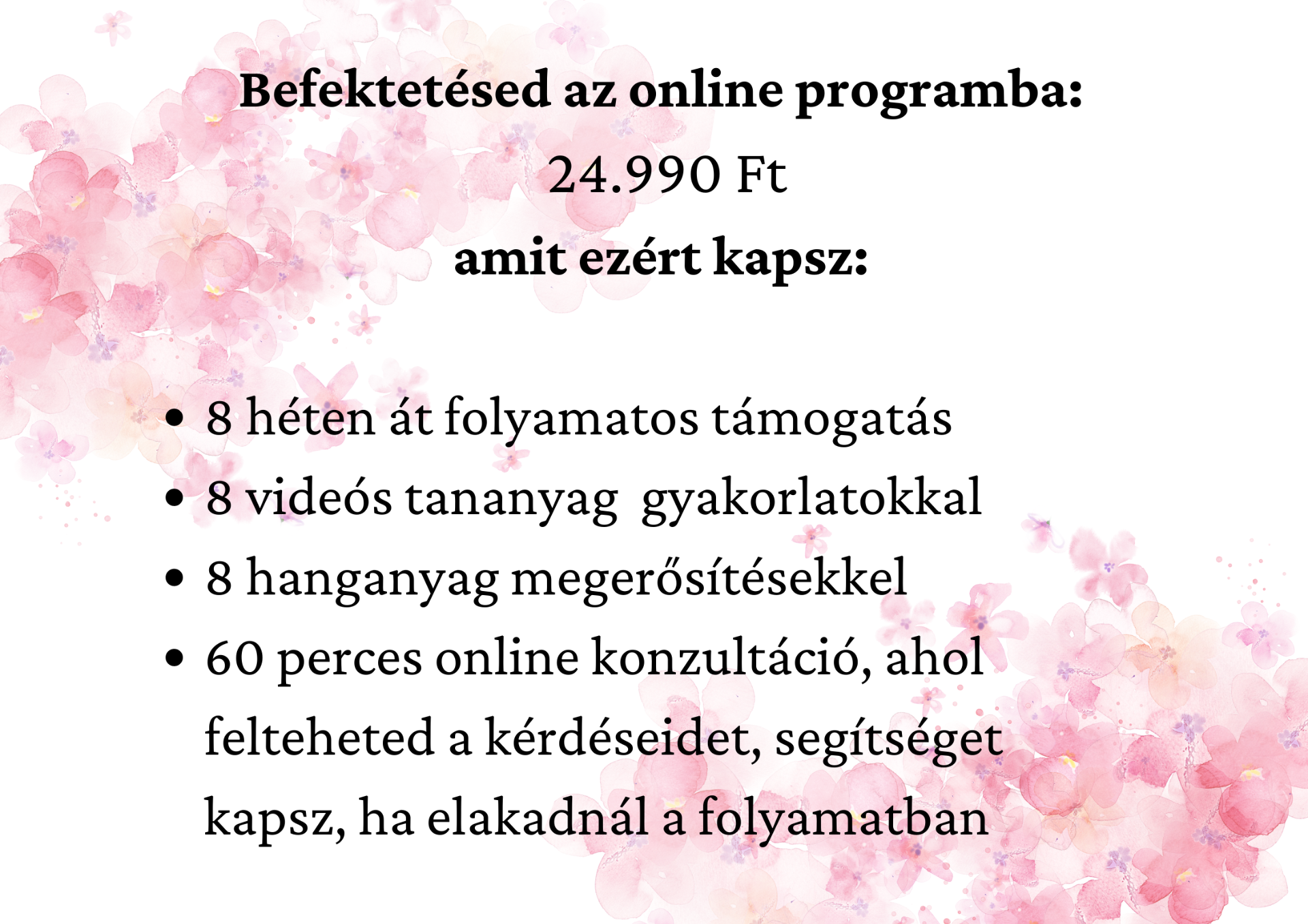 Ha igazán szeretnéd a változást, és beleadod magad, a 8 hét intenzív átalakulást hozhat számodra, fejben, lélekben és testben. Ha engeded, ez a program át fogja alakítani mindazt, ahogyan eddig az Önmagadhoz fűződő viszonyodat jelentette